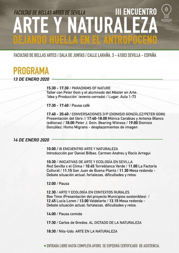 San Juan de Buena Planta participará en el III Encuentro sobre ARTE Y NATURALEZA organizado por los profesores de Facultad de Bellas Artes de Sevilla Daniel Bilbao, Carmen Andreu y Rocío Arregui dentro del "Máster en Arte: Idea y Producción" los días 13 y 14 de enero de 2020.